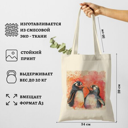 Шоппер с принтом! Ищете идеальный аксессуар для повседневной жизни? Представляем нашу сумку-шоппер с принтом – это стильный, удобный и прочный спутник в любых путешествиях! Характеристики: Состав: 70% хлопка + 30% ПЭ Плотность материала: 190 гр/м², Размеры: высота 39 см, ширина 34 см, глубина дна 5 см, длина лямок 30 см Максимальная нагрузка: до 10 кг. • Надежность: сумка сшита армированными нитками повышенной прочности, что гарантирует долгий срок службы. • Экологичность: забудьте про одноразовые пакеты! Наша сумка – альтернатива, которая прослужит вам долгие годы. • Дизайн: яркие и оригинальные принты на любой вкус – от милых животных до весёлых надписей. • Практичность: легко вмещает всё необходимое, даже если вы идёте за покупками на целый день. • Подарок: сумка-шоппер от GERASIM – это недорогой и оригинальный подарок на любой праздник! • Уход: Можно стирать в стиральной машине. Температура воды до 60°С, скорость отжима до 600 оборотов.