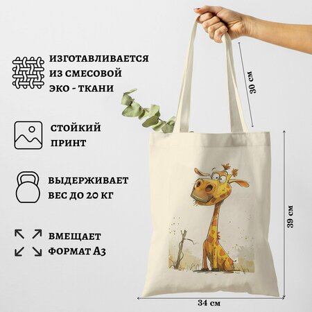 Шоппер с принтом! Ищете идеальный аксессуар для повседневной жизни? Представляем нашу сумку-шоппер с принтом – это стильный, удобный и прочный спутник в любых путешествиях! Характеристики: Состав: 70% хлопка + 30% ПЭ Плотность материала: 190 гр/м², Размеры: высота 39 см, ширина 34 см, глубина дна 5 см, длина лямок 30 см Максимальная нагрузка: до 10 кг. • Надежность: сумка сшита армированными нитками повышенной прочности, что гарантирует долгий срок службы. • Экологичность: забудьте про одноразовые пакеты! Наша сумка – альтернатива, которая прослужит вам долгие годы. • Дизайн: яркие и оригинальные принты на любой вкус – от милых животных до весёлых надписей. • Практичность: легко вмещает всё необходимое, даже если вы идёте за покупками на целый день. • Подарок: сумка-шоппер от GERASIM – это недорогой и оригинальный подарок на любой праздник! • Уход: Можно стирать в стиральной машине. Температура воды до 60°С, скорость отжима до 600 оборотов.