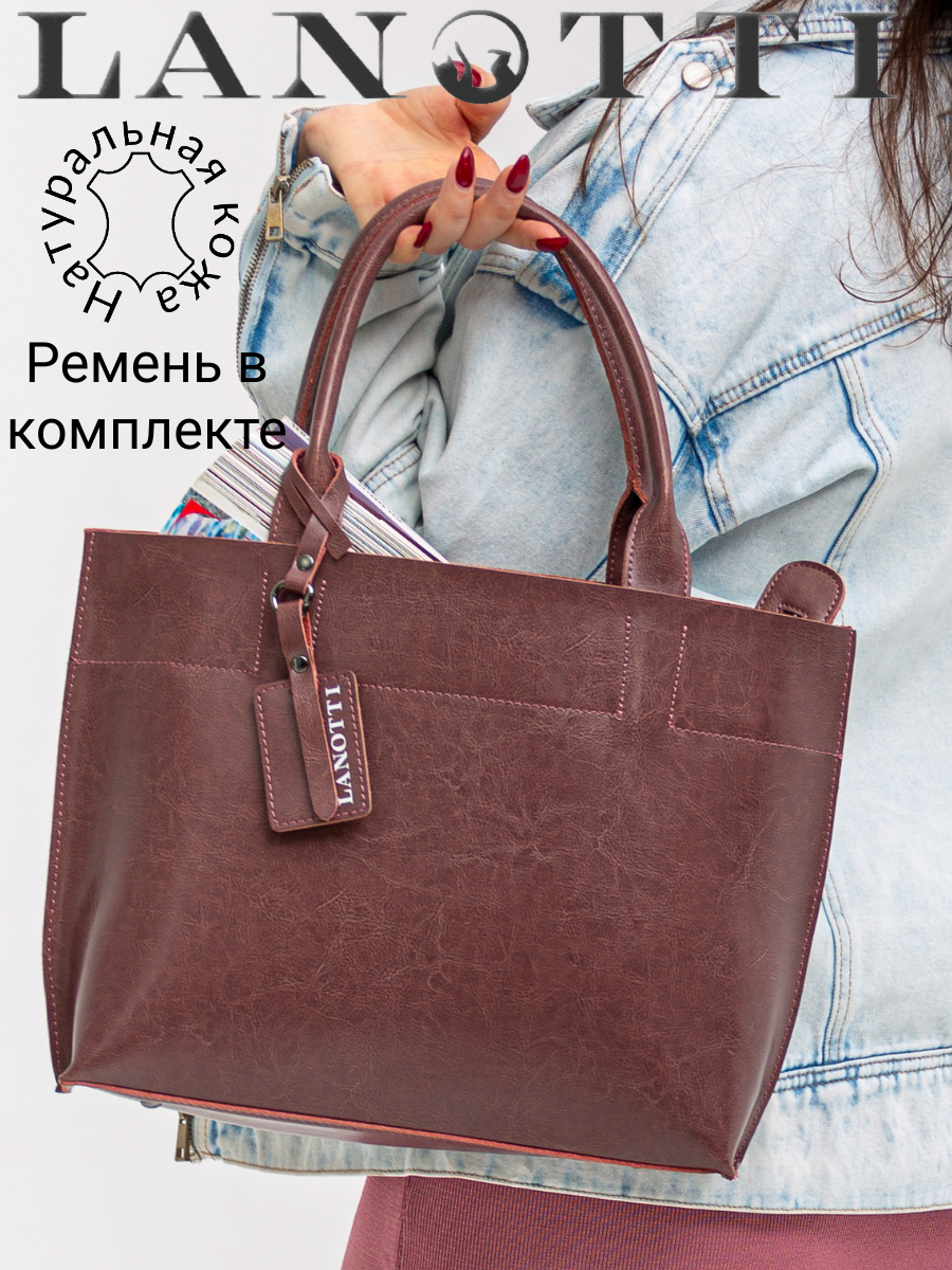 Достоинства:Заказала 4 разных сумки, только у данной модели настоящая кожа. Из-за чего сумка тяжёлая, но вместительная. у меня туда влезла большая упаковка влажных салфеток, зонт, ключи, ошейник большой для солнечных очков, контейнер с едой, банан на завтрак . ключница, жвачки, лекарства, помады, пропуски на работу.....много чего....это не сумка это дом! Недостатки:к сожалению большие ручки, периодически соскальзывают с плеча. маленькие более удобный. но хотелось бы ремень через плечо, к сожалению не предусмотрен. Комментарий:фото