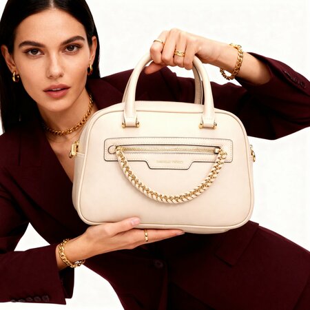 Элегантная и стильная сумка тоут боулер через плечо от Daniele Patrici выполнена из качественной экокожи бежевого цвета. Матовая фактура и гладкая поверхность придают изделию современный и модный вид. Сумка оснащена тремя внутренними отделениями и дополнительными карманами, что позволяет удобно разместить все необходимые вещи. Застежка на молнии обеспечивает безопасное хранение ваших вещей. Регулируемый плечевой ремень и удобные ручки позволяют носить ее на плече, через плечо или как кросс боди. В комплекте идет дополнительный ремень длиной 147 см. Вес сумки составляет всего 550 г, что делает ее легкой и удобной. Выбирая сумку тоут боулер через плечо среднюю от Daniele Patrici, вы получаете стильный, функциональный и надежный аксессуар, который станет незаменимым элементом вашего гардероба.