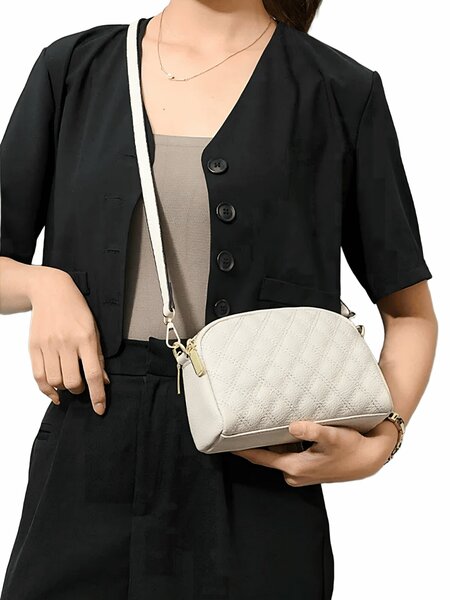 Элегантная женская сумка через плечо в стиле кросс-боди — сочетание лаконичности и изысканности. Основные характеристики: Форма: полукруглая (куполообразная), компактная, с плавными линиями. Цвет: светло-бежевый — универсальный вариант, легко сочетающийся с любой одеждой. Материал: натуральная кожа с стёганой текстурой (ромбовидный узор), придающая аксессуару роскошный вид. Поверхность матовая, с лёгким рельефом. Дизайн: минималистичный, без лишних деталей — акцент на качестве материала и аккуратной отделке. Фурнитура: металлическая. Добавляет изделию нотку роскоши и контрастирует с чёрным цветом сумки. Ремень: регулируемый, выполнен из кожи. Оснащён надёжными металлическими креплениями. Длина позволяет носить сумку на плече или через плечо. Застёжка: молния — практичное и стильное решение, обеспечивающее быстрый доступ к содержимому. Размер: компактный, но вместительный — идеально подходит для хранения самых необходимых вещей (телефона, кошелька, ключей, помады). Дно: жёсткое, с дополнительной прокладкой — сумка держит форму даже при полной загрузке. Практичность: компактный размер не утяжеляет образ, при этом сумка достаточно вместительная для повседневного использования. Стиль: универсальный — подойдёт как к повседневному кэжуал-образу, так и к более формальному наряду. Качество: аккуратная прошивка, прочные швы, надёжная фурнитура — гарантия долговечности. Удобство: регулируемый ремень позволяет подобрать оптимальную длину для комфортного ношения. Сочетается: с классическим пальто и ботильонами для делового образа; с джинсами и свитером для повседневного стиля; с платьем-футляром и туфлями-лодочками для вечернего выхода; с кожаной курткой и узкими брюками для дерзкого городского лука. Эта сумка станет стильным и практичным дополнением к любому гардеробу!