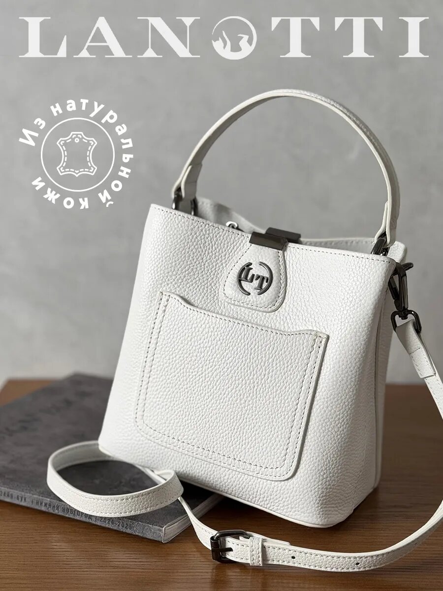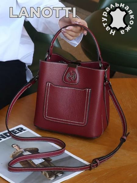Кросс-боди через плечо из натуральной кожи Lanotti – это стильный и функциональный аксессуар, который станет незаменимым помощником в организации повседневной жизни от Ланотти. Сумка женская из кожи выполнена из высококачественной натуральной кожи, которая обеспечивает долговечность и надежность изделия. Кожа приятна на ощупь и придает аксессуару элегантный и роскошный вид. Выбирая брендовую модель сумки из натуральной кожи, вы получаете не только качественный товар, но и статусный аксессуар, который подчеркнёт ваш безупречный вкус и стиль. Классический универсальный цвет позволяет сочетать сумку женскую из натуральной кожи с любой одеждой и обувью. Будь то повседневный офисный или вечерний театральный образ, сумка-ведро идеально дополнит ваш стиль и подчеркнёт вашу индивидуальность. Прогулка по городу или путешествие – она поможет вам организовать все необходимые документы и телефон. Качественная фурнитура, молния на кармане и магнитная застёжка защитят вещи от посторонних взглядов и непогоды. Аксессуар оснащён удобной съёмной ручкой и регулируемым плечевым ремнём из натуральной кожи. Для наших покупателей текстильный широкий ремень идёт в подарок! Вы сможете выбрать наиболее удобный вариант ношения в зависимости от ситуации и вашего настроения. Сумки женски кожаные станут идеальным новогодним подарком, подчёркивая праздничное настроение и стиль. В новогоднем сезоне сумка будет отлично смотреться, дополняя и освежая ваш образ. Идеальный подарок от российского бренда с итальянским качеством. Ваш Ланотти.