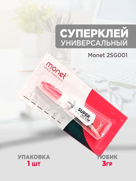 Суперклей Monet 2SG001, жидкий, универсальный, прозрачный, 3 г