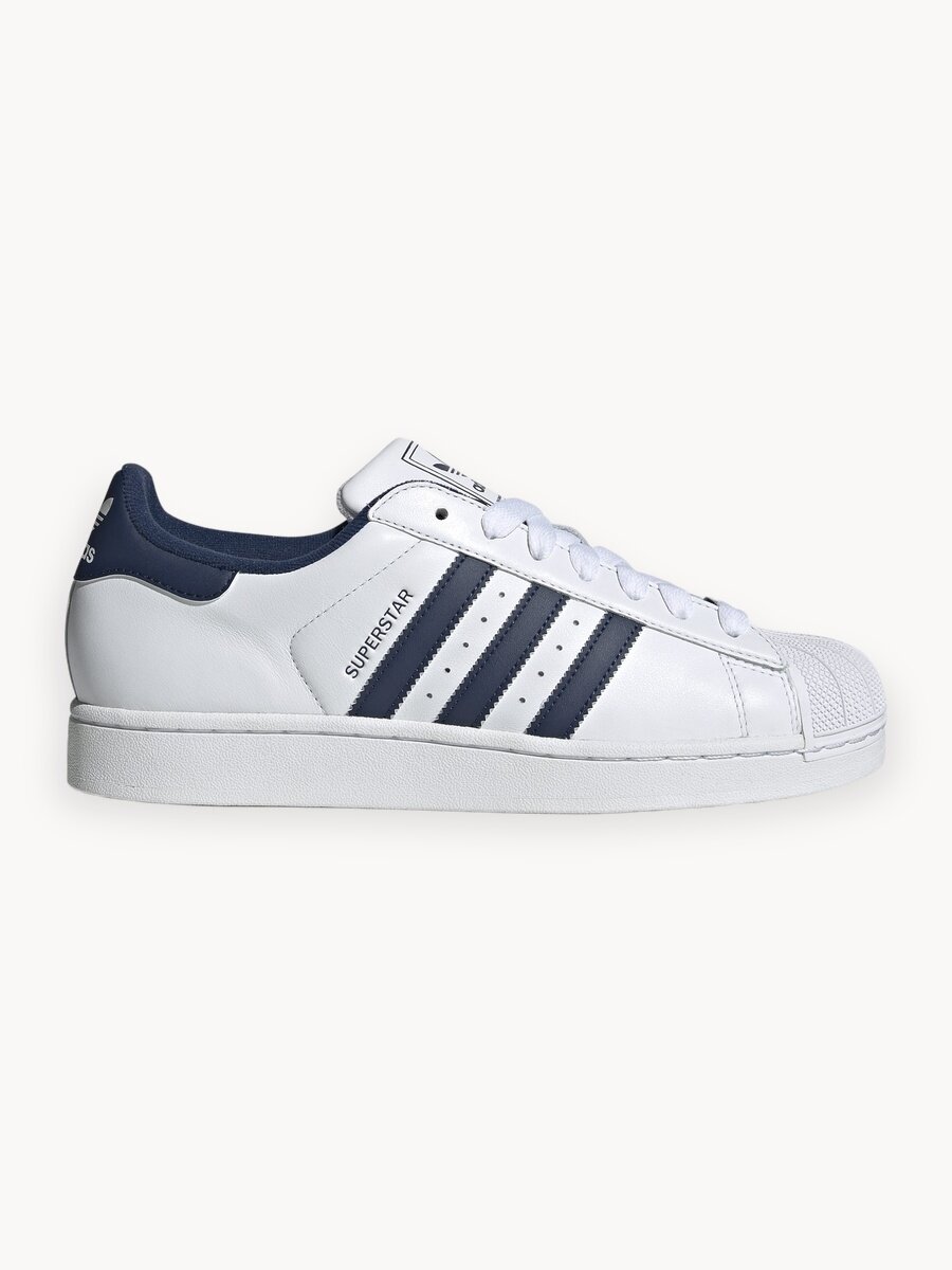 Кроссовки adidas SUPERSTAR II — это культовая модель, ставшая символом уличной моды и самовыражения уже на протяжении нескольких десятилетий. Отличительной особенностью этих кроссовок является фирменный «ракушечный» носок из резины, который не только придаёт оригинальный внешний вид, но и обеспечивает дополнительную защиту обуви. Верх выполнен из высококачественной натуральной кожи белого цвета, что гарантирует долговечность, износостойкость и комфорт даже при интенсивной ежедневной эксплуатации. Боковые панели украшают узнаваемые три полоски тёмно-синего цвета и надпись SUPERSTAR, подчеркивающие легендарный стиль adidas. Удобная текстильная подкладка и амортизирующая стелька обеспечивают комфорт при ходьбе и активных движениях, а прочная резиновая подошва с вафельным протектором гарантирует отличное сцепление с различными поверхностями. Лаконичный и универсальный дизайн позволяет сочетать adidas SUPERSTAR II как с классическими джинсами, так и со спортивной или повседневной одеждой, делая их идеальным выбором для динамичного городского ритма. Эта модель прекрасно подходит для тех, кто ценит в обуви стиль, функциональность и проверенное временем качество.