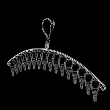 Компактная подвесная вешалка с зажимами для сушки и хранения мелких вещей - Компактная подвесная вешалка с зажимами для сушки и хранения мелких вещей - это удобный и практичный аксессуар, который поможет вам избежать потери мелочей в шкафу и поиск пары к носкам после стирки. Эта навесная сушилка-органайзер специально разработана для хранения мелочей и сушки белья. В наборе вы найдете съемные прищепки, которые крепко держат вещи и не оставляют заломов. Бельевая вешалка с прищепками изготовлена из прочной нержавеющей стали и имеет гладкую округлую форму, что исключает возможность появления затяжек на одежде. Специальные крючки с прищепками позволяют удерживать вешалку с бельем даже в ветреную погоду. Мини сушилку для белья можно использовать в ванной комнате, на балконе, на двери или в шкафу. Эта многофункциональная вешалка подходит для детской одежды, нижнего белья, носков, перчаток, трусов, полотенец и тряпок. Маленькая сушка-прищепка высушит белье и поможет организовать его хранение дома, на даче или в поездке. Благодаря своей конструкции сушилка с прищепками может крепиться на кронштейн для душа, бельевую веревку или карниз для ванной. Наша прищепка - стильный и надежный помощник дома, на даче и в дороге. Она также может использоваться в качестве уличной сушилки для белья.