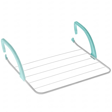 Достоинства:удобная сушилка, крепления легко передвигаются, прутья крепкие, используем как столик на балконе, положив сверху поднос)