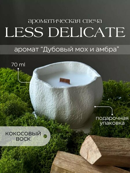 Изысканная ароматическая свеча "less delicate" от LS Decor, украшенная гипсовым подсвечником, является вершиной стиля и элегантности. Этот акцент интерьера поражает утонченностью исполнения внешнего вида, напоминая о высоких стандартах роскоши. В основе лежит премиальный кокосовый воск, который обеспечивает не только долгое и стабильное горение, но и таит в себе глубокий аромат, составленный из чистых натуральных компонентов. Подсвечник, литой из высокопрочного гипса, отличается изяществом формы и неповторимостью текстуры, являясь не просто ремесленным изделием, а истинным примером скульптурного искусства. Экологичность же производства подчеркивает философию LS Decor о гармоничном сочетании человека и природы, предоставляя возможность наполнить ваше пространство красотой, не вредя при этом окружающей среде. Объем свечи: 70 гр Время горения: 10 - 14 часов Состав: высокопрочный гипс с минеральными добавками, натуральный кокосовый воск, аромат без примесей и фталатов, деревянный фитиль из шпона американской вишни. Аромат: дубовый мох и амбра Профиль нот: верх: грейпфрут, апельсин, шалфей, середина: лаванда, база: бобы тонка, амбра, дубовый мох Ароматические свечи от LS Decor создаются вручную с любовью, трепетом и непререкаемым вниманием к самым мелким деталям. В процессе их изготовления мы останавливаем свой выбор исключительно на высококачественных материалах.