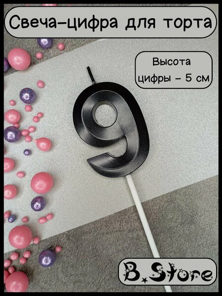 Свеча-цифра "9" для торта: стильный и яркий аксессуар Свеча-цифра "9" для торта от B.Store станет прекрасным украшением вашего праздничного стола. Черный цвет свечи будет выглядеть стильно и элегантно на любом фуршетном столе, привлекая внимание гостей. Свеча изготовлена из качественного парафина, что гарантирует безопасность и долгий срок службы. Хлопковый фитиль обеспечивает равномерное горение и отсутствие дыма. Свеча-цифра "9" подходит для празднования дня рождения ребенка в возрасте 9 лет. Свеча-цифра "9" от B. Store – это не только стильный аксессуар, но и символ праздника, который сделает ваш день особенным и запоминающимся.