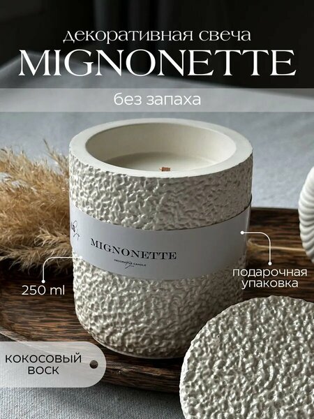 Изысканная декоративная свеча "Мignonette" от LS Decor, украшенная гипсовым подсвечником, является вершиной стиля и элегантности. Этот акцент интерьера поражает утонченностью исполнения внешнего вида, напоминая о высоких стандартах роскоши. В основе лежит премиальный кокосовый воск, который обеспечивает стабильное горение. Подсвечник, литой из высокопрочного гипса, отличается изяществом формы и неповторимостью текстуры, являясь не просто ремесленным изделием, а истинным примером скульптурного искусства. Экологичность же производства подчеркивает философию LS Decor о гармоничном сочетании человека и природы, предоставляя возможность наполнить ваше пространство красотой, не вредя при этом окружающей среде. Объем свечи: 250 гр Время горения: 40 часов Состав: высокопрочный гипс с минеральными добавками, натуральный кокосовый воск, деревянный фитиль из шпона американской вишни. Аромат: без аромата Декоративные свечи от LS Decor создаются вручную с любовью, трепетом и непререкаемым вниманием к самым мелким деталям. В процессе их изготовления мы останавливаем свой выбор исключительно на высококачественных материалах.