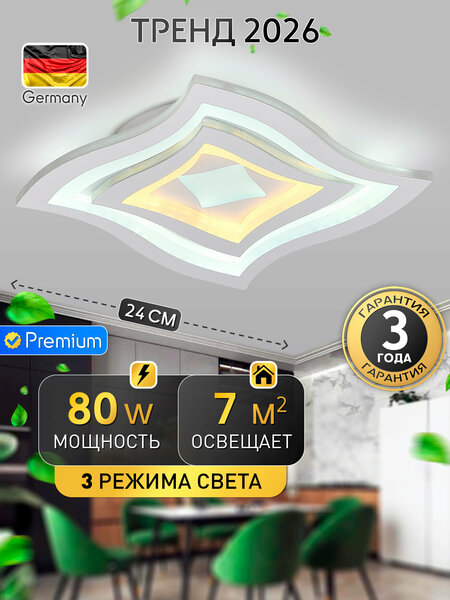 Настенное бра, Люстра потолочная светодиодная от бренда Natali Kovaltseva представляет собой современное и функциональное решение для освещения вашего дома. Светильник выполнен в стиле хай-тек, который хорошо сочетается с современным интерьером, а также может стать отличным дополнением к классическому или модернистскому дизайну. Данный светильник можно установить на стену или на любую другую поверхность под наклоном. Освещение - это 50% вида и комфорта Вашего дома, поэтому мы предлагаем остановить ваш выбор на лучшем! Люстра оснащена светодиодными лампами, что обеспечивает высокую энергоэффективность и долговечность. Современный дизайн люстры придаст свежести любому интерьеру. Обратим внимание, что данная стилистика люстры является самым актуальным на сегодняшний день. Минималистичный дизайн с матовым акриловым рассеивателем будет актуален ещё более 10 лет. Общая мощность 80W со световым потоком 3840 lm позволяет осветить до 7 кв. м. Рекомендуем выбрать люстру с запасом по площади освещения. Через настенный выключатель вы можете регулировать цвет освещения (теплый, холодный, нейтральный), создавая идеальную атмосферу в любой комнате. Пульта ДУ в комплекте НЕТ! Данный светильник идеально подходит для различных помещений, таких как кухня, спальня, гостиная, детская или игровая комната, а также для балкона, коридора. Он легко устанавливается на любой тип потолка, включая натяжной, и имеет скрытый тип монтажа, что делает его универсальным решением для любого интерьера. Люстра станет отличным решением как для низкого потолка, так и для высокого. Люстра выполнена из металла и акрила, что обеспечивает ей прочность и долговечность. Производитель предоставляет расширенную гарантию 3 года. Степень пылевлагозащиты IP20 гарантирует, что светильник будет хорошо работать в обычных условиях использования. Срок службы светодиодов составляет 50 000 часов, что является отличным показателем качества. Выбирая эту люстру, вы получаете не только качественное и эффективное освещение, но и возможность создавать уникальную атмосферу в вашем доме. Уникальная люстра на потолок для вашего дома!
