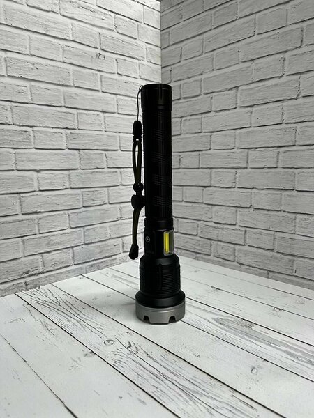 Отлично подойдет для рыбаков, туристов, дачников. Характеристики Режимы: 100%, 50%, стробоскоп Особенности: имеет дополнительный экономичный светодиод на рукоятке. Он позволяет подсвечивать рабочую зону, не используя основной источник света, там где это необходимо, что позволяет существенно снизить расход заряда батареи. Так же этот светодиод имеет сигнальное свечение стробоскоп, красного цвета. (Включение осуществляется двойным коротким нажатием на кнопку включения основного света) Описание: Цвет: черный Материал: высокопрочный износостойкий алюминиевый сплав Источник питания: аккумулятор 26650 6800 мАч - 2шт Дольность: до 2000м (заявлено производителем)