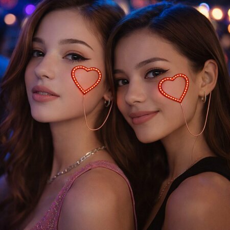 Светодиодное сердечко COSY, для двух девочек, полимерный материал, 3,5x3,5см, с блоком питания (2 набора)