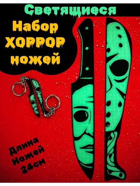 Набор светящихся "Хоррор Ножей" от бренда 3Deshka представляет собой уникальную коллекцию, выполненную в стиле ужасов. Оборотная сторона Ножей Черная! Для того чтоб ножи светились, надо подержать их 20-30 мин на солнце. Свечение в реальности менее яркое чем на фото. + Брелки в подарок. Самые известные Герои Хоррор фильмов у Вас на ножах: Оно , Пила , Майкл Майерс , Чаки , Крик , Джейсон. Идеальный подарок на Halloween и просто Любителям Фильмов Ужасов. Каждая фигурка изготовлена из экологичного PLA пластика. Фигурки в виде ножей воспроизводят лица героев из известных фильмов ужасов, привлекая внимание своей точностью и оригинальностью. Этот набор не только добавит интерес к вашей коллекции, но и станет отличным элементом для декорации интерьера в стиле хоррор. Возможно вы искали: фильмы ужасов ; хоррор ; пятница 13 ; Фредди крюгер