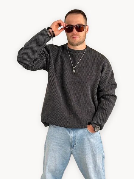 Мужской свитер крупной вязки черного цвета с круглым вырезом горловины. Свитер мужской с круглым вырезом горловины, крупной вязки, черного цвета - это база в мужском гардеробе. Подойдет для деловых и повседневных образов. Свитер на осень и зиму для мужчин выполнен из плотного вязаного трикотажа: в нём будет уютно и тепло в холодную погоду. Благодаря фактурной вязке джемпер хорошо тянется, держит форму, выгодно выделяя среди других. Круглый вырез не пережимает горло и держит форму, отлично подойдет под рубашку. Мужская кофта из натуральной шерсти с акрилом прекрасно сохраняет тепло, она очень прочная, не растягивается и не мнется. В ней комфортно зимой и осенью. Свитер прекрасно освежит гардероб и будет незаменимой вещью для повседневной носки. Состав: 70% шерсть, 30 % акрил.