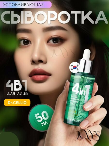 Dr.Cellio 4 в 1 Успокаивающая сыворотка для лица с экстрактом центеллы и алоэ, 50 мл