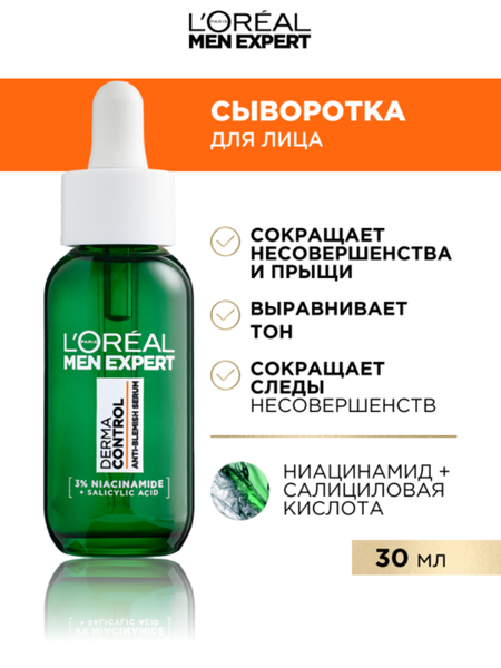 L'Oreal Paris Men Expert Сыворотка для лица "Derma Control" против несовершенств кожи, 30 мл