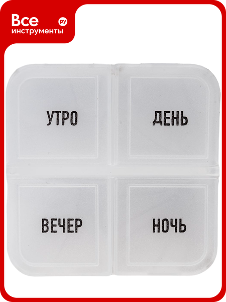 Таблетница на день Ecos 4 секции, день/утро/вечер/ночь 104325 предназначена для упорядоченного и компактного хранения лекарственных средств и витаминов. Упаковка: пакет + стикер.