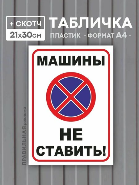 Табличка Машины не ставить А4 (пластик 3 мм.) + скотч /Машины не парковать