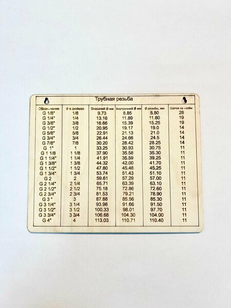 Таблица: Трубная резьба. Производство Россия, изготовлено из фанеры 3 мм, размер 200*170 мм