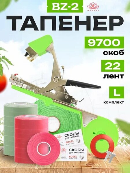 Тапенер BZ–2 для подвязки растений это незаменимый инструмент для каждого огородника. Этот удобный садовый помощник позволяет легко и быстро закреплять ветки ваших растений, будь то кусты малины, томатов или даже винограда. Подвязчик поможет обеспечить надежную опору для роста и развития вьющихся и других растений. Универсальный степлер с металлической конструкцией обеспечивает долговечность и надежность в работе. В комплекте вы найдете всё необходимое тапенер, скобы, сменный нож, а так же пластиковую ленту изготовленную лидером по производству лент в России фирмой Мадана. Лента красная толщина 150 мкр ширина 11 мм выдерживает 4,5 кг длина 30 м, оливковая лента более усиленная и температура размягчения выше 100 градусов толщина 140 мкр ширина 10 см динна 30 метров. Благодаря этому набору подвязка станет простым делом на вашем участке, будь то дача или полноценная теплица. Специально разработанный ручной держатель облегчает процесс работы. Инструмент удобно лежит в руке, а прорезиненная ручка заботится о комфорте садовода на протяжении всего процесса подвязки. С использованием этого устройства ваши цветы, розы или помидоры будут аккуратно закреплены без ущерба. Он подходит для любых кустарников и огурцов на земельном участке у дачника. Тапенер станет прекрасным подарком для любителей садоводства.