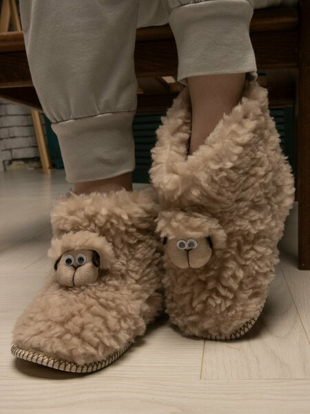 Чуни домашние в виде барашка с добавлением натуральной овечьей шерсти ( Мех гипоаллергенный)с закрытым мыском. Наша новинка зимняя , весенняя коллекция тапков очень уютные и теплые, идеальны для дома. Домашние бабуши ,позволят вам почувствовать себя максимально уютно. Овечий мех обладает лечебными свойствами: он прогревает ваши ноги, тем самым расслабляя ваши суставы после рабочего дня и стимулируя кровообращение .Обладают хорошей терморегуляцией и являются эко.Тёплые плюшевые и комфортные, идеальное решение милого подарка любимой,маме,бабушке,подруге,коллеге или любимому папе,дедушке . Данные комнатные тапочки можно носить как дома так и на даче. Наши домашние валенки из шерсти овчины мягкие, лёгкие и удобные будут защищать от холодов зимы и весны, а материал изготовленный из высококачественных экологически чистых продуктов прослужит еще очень долго. Наш размерный ряд 36, 37, 38, 39, 40, 41, 42 , представлены в белом и бежевом цвете тренде весны 2022.. Подарок на 8 марта