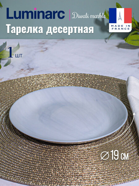 Стеклянная десертная тарелка Luminarc Diwali Marble - это стильный и функциональный аксессуар для вашей кухни. В комплект входит 1 десертная тарелка из ударопрочного стекла, диаметром 19 см. Благодаря прочному материалу, посуда также подходят для использования в СВЧ-печи и мытья в ПММ. Круглая тарелка из стекла без бортика идеально подходит для сервировки десертов, закусок и других блюд. Лаконичный дизайн тарелки хорошо сочетается с разными столовыми приборами и элементами сервировки, делая ее практичным дополнением к любому столовому сервизу. Набор посуды из стекла Luminarc – это универсальный и приятный подарок, который подойдет к любому празднику: Новому году, Рождеству, 8 Марта, Дню рождения, новоселью или годовщине и определенно порадует маму, жену, подругу, сестру, бабушку, коллегу или друзей. Она сочетает в себе практичность, стиль и уют, став незаменимым помощником на каждой кухне!