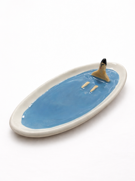 Тарелка с объёмной фигуркой купальщицы, для утонченного интерьера. Производитель - петербургский бренд Glinka Ceramics. Пищевая эмаль, можно использовать в микроволновой печи, нельзя мыть в посудомоечной машине.