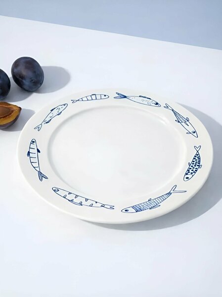 Тарелка с принтом "Рыбы" 21 см, керамика, подходит для СВЧ-печи