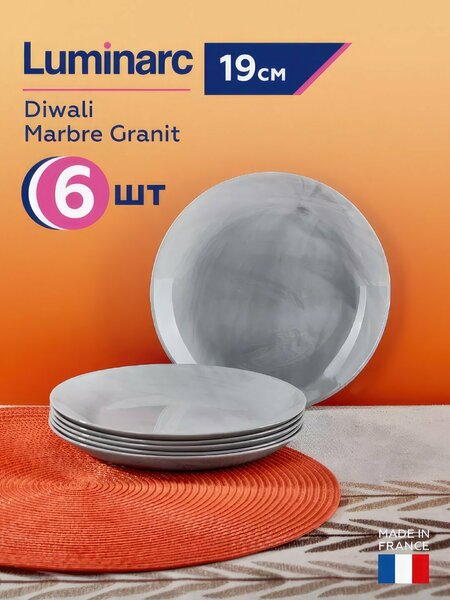Набор из 6 десертных тарелок Luminarc Diwali Marble Granit размером 19 см станет отличным выбором для повседневного и праздничного использования. Изготовленные из ударопрочного стекла, эти тарелки обладают высокой устойчивостью к механическим ударам, царапинам, сколам и нагреву в микроволновой печи. Благодаря использованию особого вида стекла, тарелки Luminarc Diwali Marble Granit сохраняют свой первоначальный внешний вид на протяжении всего срока службы. Они всегда выглядят нарядно, опрятно и стильно, что делает их прекрасным дополнением к любому столу. Тарелки подходят для использования в микроволновой печи и могут быть безопасно вымыты в посудомоечной машине. Это значительно упрощает процесс ухода за ними и экономит ваше время. Выбирайте набор десертных тарелок Luminarc Diwali Marble Granit для создания стильной и надежной сервировки стола на каждый день и для особых случаев.