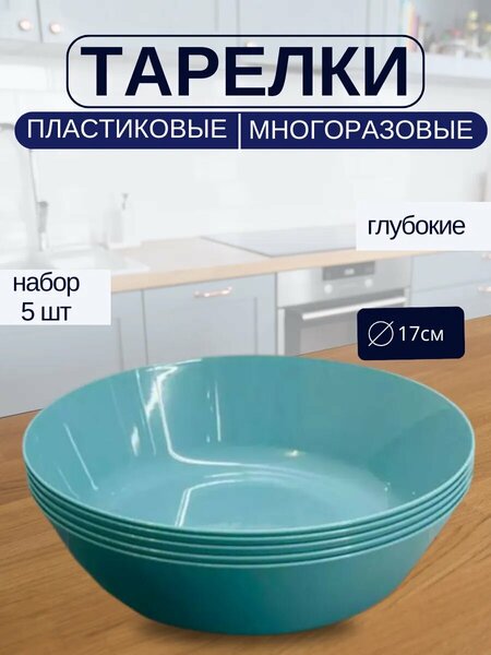Тарелки набор пластиковые суповые диаметр 17 см 5 шт