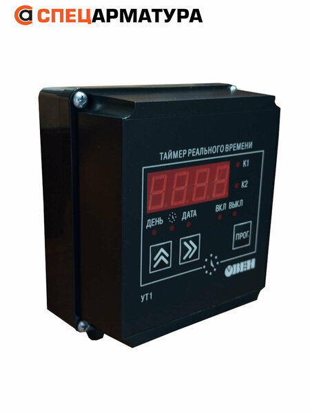 Календарный таймер УТ1 предназначен для автоматического включения и выключения исполнительных механизмов в заданный момент времени. Применяется для управления освещением в теплицах, инкубаторах, уличным освещением, а также в технологических процессах, где время включения и выключения оборудования связано с календарной датой или временем суток. Универсальный таймер реального времени двухканальный овен УТ1-Н является реле времени и предназначен для управления освещением на улице, в подъездах, инкубаторах, теплицах, а так же для включения или выключения оборудования связанного с календарной датой или временем суток. Напряжение питания: 198.253В переменного тока или 180.310В постоянного тока Количество каналов: 2 Тип выходных устройств: э/м реле Максимальный ток нагрузки: 8А Тип корпуса: настенный Н (105х130х65мм) Степень защиты корпуса: IP44