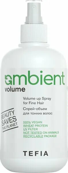 Спрей-объем для тонких волос TEFIA Ambient Volume 250 мл - профессиональное средство для ухода за тонкими и нормальными волосами. Благодаря силенизированным протеинам пшеницы, волосы получают плотность и дополнительный объем, а бетаин и масло семян хлопка обеспечивают ухаживающий эффект. Защищает волосы от высоких температур при укладке, благодаря комплексу Anti - Pollution Фактора и УФ-фильтра. Применение спрея простое и удобное: равномерно распылите на влажные, подсушенные полотенцем волосы, выполните укладку с помощью фена. Спрей-объем не требует смывания, что делает его незаменимым помощником в повседневной жизни. Целевая аудитория - взрослая, спрей подходит как для женщин, так и для мужчин. Срок годности составляет 1095 дней, что подтверждает высокое качество и эффективность продукта. Выбирая TEFIA Ambient Volume, вы получаете профессиональное средство для ухода за волосами, которое обеспечивает плотность, объем и фиксацию, а также защищает волосы от негативных воздействий окружающей среды.