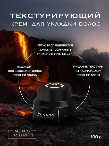Текстурирующий крем для волос Volcano Curly Cream объемом 100 мл предназначен для мужчин, которые хотят подчеркнуть красоту своих вьющихся волос. Благодаря своей легкой текстуре, крем равномерно наносится на волосы, придавая им естественный блеск и объем. Ключевым компонентом этого продукта является масло семян конопли, которое обогащает волосы влагой, предотвращая их сухость и ломкость. Крем не только придает волосам желаемую текстуру, но и ухаживает за ними, делая их мягкими и шелковистыми. Способ применения прост: возьмите небольшое количество средства, разотрите на руках и распределите по волосам. Придайте желаемую форму укладки руками или при помощи расчески. Выбирая текстурирующий крем для волос Volcano Curly Cream, вы получаете продукт, который сочетает в себе уход за волосами и создание неповторимой укладки.