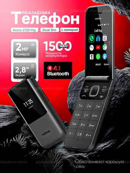 Мобильный кнопочный телефон 2720 Flip - этот незаменимый раскладной телефон имеет интуитивно понятный дизайн и большой дисплей – он прост в использовании и приятен для глаз. Для взрослых и пожилых самое то. Большой экран, большие кнопки (Русифицированная клавиатура), Иметь отдельную кнопку для быстрого набора (SOS). Два экрана которые показывает время, сообщение и календарь 24/7. Как настроить русский язык! После того как включайте телефон, заходим в пункт настройки, нажимаем один раз на правую кнопку далее три раза вниз и нажимаем ОК открывается раздел настройки нажимаем ещё раз ОК и выберем русский язык. P. s Данный товар работает от сеты 2G, то есть без выхода в интернете. Комплектация Фирменная коробка Телефон 2720 Flip Зарядное устройство Аккумулятор к телефону