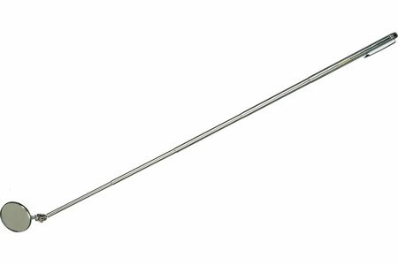 Телескопическое зеркало с магнитом Ombra A90023 для осмотра труднодоступных мест и извлечения различных деталей, выполненных из металлов на основе железа, массой до 0.05 кг. Инструмент оснащен телескопическим механизмом, позволяющим удлинять приспособление для более удобной работы. Диаметр зеркала составляет 38 мм.