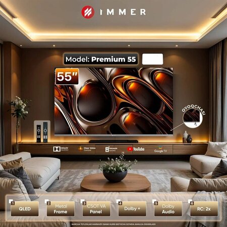 {"widgets":{"@card/UniversalPromoBadge":{"/content/page/fancyPage/defaultPage/universalPromoBadge":{"wrapperProps":{"margins":{"bottom":"3"}},"initialTime":1770978519236,"offerComposeId":"11011148016470083870"}}},"meta":{"/content/page/fancyPage/defaultPage/universalPromoBadge":{"name":"@card/UniversalPromoBadge"}},"collections":{"productServiceSnippets":{"11011148016470083870":{"productSnippet":{"snippetId":"document_id","type":"MODEL_CARD_LAYOUT","productPayload":{"snippetStyle":"NORMAL","title":{"value":"Телевизор IMMER PREMIUM 55 QLED 4K Google TV"},"badges":{},"price":{"actualPrice":{"amount":{"intPart":4700000,"currency":"UZS"},"style":"RED","type":"OTHER_DISCOUNT"},"oldPrice":{"amount":{"intPart":5800000,"currency":"UZS"},"style":"STRIKETHROWED"}},"gallery":{"mediaItems":[{"picture":{"baseUrl":"https://avatars.mds.yandex.net/get-mpic/18709130/2a0000019ba69445ad9b63f3bd3d127fd839/","width":1280,"height":1280,"title":"Телевизор IMMER PREMIUM 55 QLED 4K Google TV"},"type":"IMAGE"}]},"wishlistButton":{"businessId":216616226,"mskuId":4977577265,"modelId":4977577264,"oskuId":4977577265,"offerId":"ZYkEBVmxdrJiJbjwntx2og"}},"baobabPayload":{"type":"offer","wareId":"ZYkEBVmxdrJiJbjwntx2og","modelId":4977577264,"marketSku":"4977577265","snippet_type":"product","isExpress":false,"price":5800000,"additionalPrices":[{"priceType":"withDiscount","priceValue":4700000},{"priceType":"unknown","priceValue":5800000}],"hid":90639,"shopId":431782,"shopSku":"MRKT-AB0ZU7EB","supplierId":216616225,"supplierType":3,"isUltima":false,"oskuId":4977577265,"snippetTheme":"GRID_FULL","stockCount":10,"promoLogJoinId":"4ede8cf57e854c179bdd3c013877dade/f240650073ad3cf5"},"themeType":"GRID_FULL"}}}}}