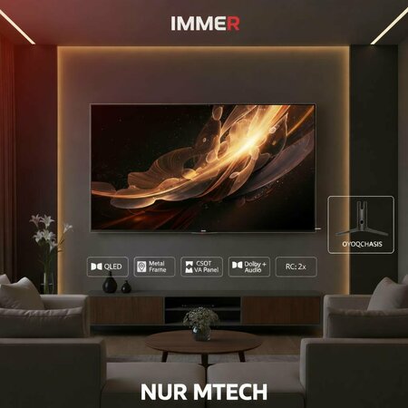 Телевизор IMMER Premium — это сочетание стильного дизайна и современных технологий изображения и звука. QLED-экран обеспечивает яркие, насыщенные цвета и высокую контрастность, а разрешение 4K Ultra HD передаёт максимум деталей даже на большом экране. Модель представлена в двух диагоналях — 55″ и 65″, что позволяет выбрать оптимальный вариант под размер комнаты: • 55″ — для спален и гостиных среднего размера • 65″ — для просторных гостиных и домашнего кинотеатра Операционная система Google TV объединяет фильмы, сериалы и приложения в одном интерфейсе. Поддержка YouTube, онлайн-кинотеатров и голосового управления делает использование максимально удобным. Звук с поддержкой Dolby Audio обеспечивает чистые диалоги и объёмное звучание без необходимости дополнительной акустики. Металлическая рамка подчёркивает премиальный внешний вид и отлично вписывается в современный интерьер.