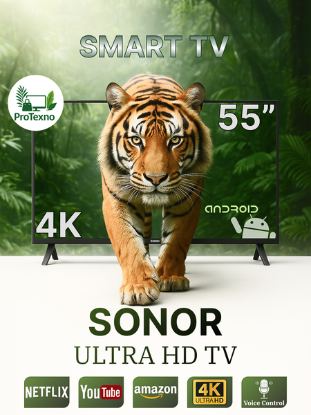 Телевизор SONOR 55SNR100SV – это современное устройство с впечатляющими характеристиками, которое станет идеальным выбором для домашнего развлечения. Данный ULTRA HD DTV оснащен мощным чипсетом T962D4 и четырехъядерным процессором ARM Cortex-A55, что обеспечивает плавную работу и быструю обработку данных. Встроенный GPU ARM Mali-G31 MP2 гарантирует высокое качество графики, а операционная система Android 13 открывает доступ к множеству приложений и сервисов. Дисплей телевизора SONOR 55SNR100SV выполнен на базе IPS-панели от BOE с диагональю 55 дюймов и разрешением 3840 × 2160 пикселей. Яркость в 230 кд/м² и контрастность 5000:1 обеспечивают насыщенные цвета и четкое изображение. Угол обзора 178° гарантирует комфортный просмотр с любой точки комнаты. Частота обновления 60 Гц и время отклика 8 мс делают этот телевизор отличным вариантом для динамичных сцен в фильмах и играх. Звуковая система включает два мощных динамика по 10 Вт, поддержку Dolby и эквалайзер, что позволяет настроить звук в зависимости от предпочтений. Телевизор поддерживает различные форматы видео и аудио, включая MPEG4, H.264, HEVC/H.265, VP9 и AV1. Встроенный модуль Wi-Fi и Bluetooth обеспечивают удобное подключение к сети и периферийным устройствам. Среди разъемов доступны HDMI 4K 144Hz, USB 3.0, AV-вход, цифровой аудиовыход и CI-слот. Благодаря поддержке Smart TV, Chromecast и голосового поиска Google Assistant пользователи могут наслаждаться контентом на популярных платформах, таких как YouTube, Netflix и Amazon Prime Video. Энергоэффективность класса A и потребляемая мощность 108 Вт делают устройство экономичным в эксплуатации. Телевизор SONOR 55SNR100SV – это идеальный выбор для тех, кто ищет сочетание качества, функциональности и современных технологий!