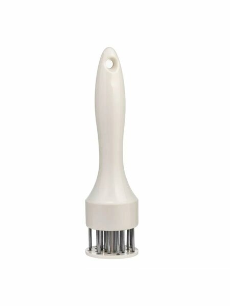 Размягчитель поможет преобразить жесткое мясо в нежное и аппетитное блюдо. Острые шипы разрывают грубые волокна, делая структуру мяса более мягкой. Тендерайзер облегчает и ускоряет процесс готовки. Защитная пластина с возвратной пружиной предотвращает порезы. В отличие от отбивания молотком, мясо сохраняет свою сочность, окружающая поверхность не загрязняется, а процесс не создает шума. Рабочая часть изготовлена из нержавеющей стали с высоким содержанием никеля. Ручка имеет отверстие для подвешивания. Можно мыть в посудомоечной машине.