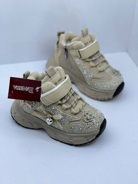 Детские кроссовки выполнены в модном дизайне со стразами и декоративными элементами, которые привлекают внимание и нравятся детям. Внутри — мягкая утеплённая подкладка, сохраняющая тепло в прохладную погоду. Удобная застёжка на липучке и шнуровка обеспечивают надёжную фиксацию стопы и лёгкость при надевании. Толстая подошва с рельефным протектором устойчива к скольжению и подходит для активных прогулок. Идеальный вариант для повседневной носки в детский сад, школу и прогулок.