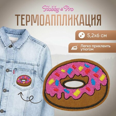 Термоаппликация на одежду Hobby&Pro 'Пончик', 5.2*6 см, полиэстер