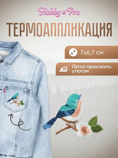 Термоаппликация на одежду, термонаклейка 'Синяя птица', 7*6,7 см, Hobby&Pro