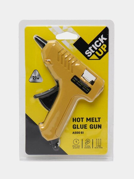 Клеевой пистолет Stick Up A500 61- удобный и практичный инструмент для быстрого и надежного склеивания различных материалов. Подходит для дома, творчества, рукоделия, ремонта и хобби. Мощность 21Вт обеспечивает быстрый нагрев и стабильную подачу горячего клея. Пистолет легко лежит в руке, оснащён удобным курком и тонким металлическим носиком для аккуратной и точной работы. В комплекте идут 3 клеевых стержня, что позволяет начать работу сразу после покупки. Подходит для склеивания бумаги, картона, пластика, ткани, дерева, кожи, декора и других материалов. Отличный выбор для школьных проектов, поделок, декора и мелкого ремонта.
