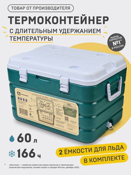 Представляем вам термоконтейнер "Арктика" объемом 60 литров с удобными ручками - идеальный компаньон для ваших приключений на природе! Этот изотермический контейнер предназначен для использования в туризме, на пикниках, в походах и на рыбалке, обеспечивая сохранность температуры вашей еды и напитков в течение длительного времени. Благодаря своему объему и прочной конструкции, он также легко превращается в дорожный холодильник для перевозки продуктов в автомобиле. Термоконтейнер "Арктика" 60 литров идеально подойдет как контейнер для хранения напитков и продуктов, при этом может использоваться как надежный медицинский контейнер для транспортировки лекарств и медицинских препаратов. Благодаря возможности добавления хладоэлементов, он может также функционировать как контейнер для заморозки. Этот термобокс с прочными ручками обладает клапаном для конденсата и двумя емкостями для льда, что делает его удобным и практичным в использовании. Кроме того, он способен выдерживать нагрузку до 100 кг, что делает его идеальным для использования как стол или стул. Обращаем ваше внимание, что в термоконтейнере запрещено использовать сухой лед, т. к. это приведет к разрушению внутренних стенок контейнера из-за переохлаждения пластика. В результате, термоконтейнер перестанет поддерживать температуру в соответствии с заявленными характеристиками. Рекомендуем использовать вместе с изотермической продукцией «Арктика» из расчета не менее 10% от объема термосумки или термоконтейнера. Например, если у вас термосумка на 30 литров, то аккумуляторов холода вам понадобится не менее 3 литров в сумме (5 шт. по 600 мл, 8 шт. по 400 мл или 15 шт. по 200 мл).