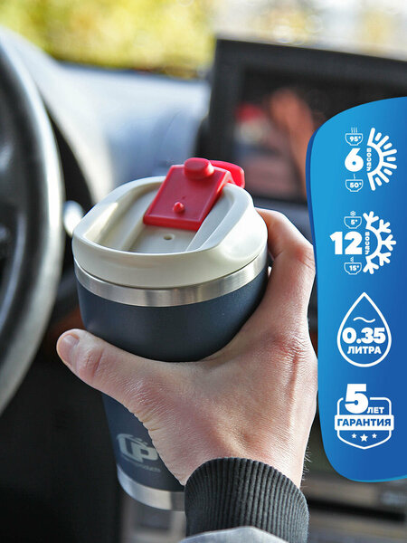 Термокружка непроливайка В дорогу 0,35л MOBILE Термокружка для кофе ударопрочная, надежная, удобная кружка термос для мужчин или женщин 450 мл. Термокружка женская имеет небьющийся корпус из нержавеющей стали 18/8 снаружи и внутри, превосходная вакуумная изоляция обеспечивают надежность и высокие термоизоляционные свойства. Герметичность 100%. Монолитная пластиковая крышка оснащена плотно фиксирующейся защелкой в области питья. Ее удобно вывинчивать благодаря особом боковым углублениям для захвата рукой. Материал крышки - экологичный пищевой пластик без запаха и силиконовый уплотнитель. Прорезиненное основание для устойчивости на гладкой поверхности. Подходит к большинству автомобильных подстаканников. Идеально для заваривания напитков в поездках, на работе в офисе или для отдыха на природе. Термокружка автомобильная подходит для приготовления супов или каш благодаря широкому горлышку. В автокружку также можно загрузить кубики льда при использовании с освежающими напитками. Вы можете использовать кружку-термос для приготовления любимых ароматных напитков, например, глинтвейн с палочками корицы или смузи. Ударопрочный корпус покрыт матовым стойким к истиранию материалом, не оставляя следов, сохраняет привлекательный внешний вид на долгое время. Кружка-термос сохраняет напитки горячими от 8 до 12 часов, холодными от 12 до 24 часов. Гарантия производителя 5 лет. Выбирая продукт LP, будьте уверены в высоком качестве, надежности и долгого срока эксплуатации изделия. Приобретая термос-кружку LP, вы вносите свой вклад в бережливое потребление и ограничение использования пластиковых стаканов. Полезный и приятный подарок на 8 марта и другие праздники. -BPA-Free пластик -Сохраняет тепло до 8 ч -Сохраняет холод до 12 ч -Гарантия производителя 5 лет