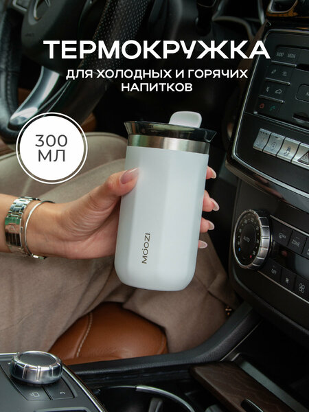 Термокружка для кофе, чая MOOZI холодных и горячих напитков с собой, 300 мл, цвет белый