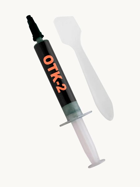 Термопаста 3 г OTK-2 Термопаста OTK-2 от компании FrostMining имеет теплопроводность 10.6Вт/мК. Это универсальное решение для охлаждения практически любой техники, где возможно применение термопасты. Термопаста умеренно густая, и обеспечивает отличный теплообмен между процессором и радиатором, а также не высыхает при длительной эксплуатации, обеспечивая стабильный отвод тепла от процессора. Предназначена термопаста для процессора (CPU), кристалла видеокарты (GPU), видеокарты, ноутбука, консоли (PS, Xbox, Nintendo), светодиодов, асика / asic ( Bitmain, Canaan, WhatsMiner, Innosilicon), а также для другого оборудования с высоким тепловыделением, где отвод тепла осуществляется с помощью радиаторов, прилегающих к нагреваемой поверхности и конструктивно предусмотрено использование термопасты. Термопаста OTK-2 Overclock Test Killer представлена в следующих граммовках: 1г, 3г, 8г, 18г, 30г, 60г. Термопаста ОТК-2 от FrostMining - это отличное решение для замены заводской некачественной пасты. Наша термопаста подходит для множества интерфейсов, отвод тепла на которых осуществляется с помощью радиаторов, прилегающих к чипу, и где конструктивно предусмотрено использование термопасты. Характеристики термопасты OTK-2: • Теплопроводность – 10.6 Вт/мК. • Плотность термопасты – 2.6 г/см. куб. • В составе термопасты для процессора качественный силикон – не ссыхается • Керамические частицы различного размера термопасты обеспечивают наилучшую заполняемость всех микропор и трещин процессора • Подходит для любого вида техники, где конструктивно предусмотрено использование термопасты.