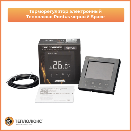Терморегулятор поддерживает комфортную температуру обогреваемой поверхности и обеспечивает рациональный расход электроэнергии. Терморегулятор обеспечивает управление по двум датчикам температуры: пола и воздуха, как одновременно, так и по отдельности. Терморегулятор может осуществлять управление водяными теплыми полами при использовании термоголовки нормально закрытого типа с управлением 230В. Терморегулятор оснащен информационным жидкокристаллическим экраном, отображающим состояние системы обогрева и сенсорными кнопками управления Комплектация