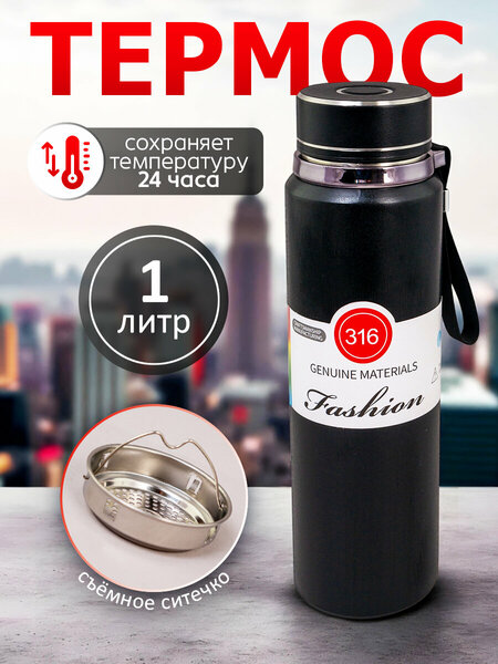 Если вы любите проводить время на природе — походы, пикники, дачу или просто путешествия — термос для напитков станет незаменимым помощником. Универсальный объем, удобная крышка-чашка и стильный черный дизайн делают его идеальным выбором для активного отдыха. Термос вместимостью 1 литр отличается своей компактностью. Он позволяет взять с собой достаточное количество горячего или холодного напитка в дорогу или на прогулку. Крышка, которая одновременно служит чашкой, делает термос удобным для использования в походах, на даче или в путешествиях. Также термос имеет эргономичный дизайн и легко помещается в рюкзак или сумку. Термос для походов выполнен из прочной нержавеющей стали, что обеспечивает долговечность и безопасность использования. Он сохраняет температуру напитков в течение 24 часов — идеально для долгих прогулок или отдыха на природе. Рекомендуется мыть термос после каждого использования, чтобы избежать накопления запахов и остатков напитков. Термос для напитков имеет ручку-петлю, что делает его отличным выбором для велопрогулок и пикников. Термос 1 литр — удобный и практичный выбор для походов, пикников и путешествий. Универсальный объем, удобная крышка-чашка, стильный черный дизайн и прочная конструкция делают его идеальным выбором для тех, кто ценит комфорт и функциональность.
