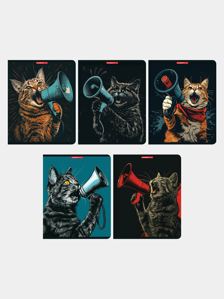 Тетрадь, А5 96 листов, клетка, "Академия Групп", КотоКрик, офсет, на скобе, обложка - мелованный картон, ВД-лак, 5 дизайнов в спайке